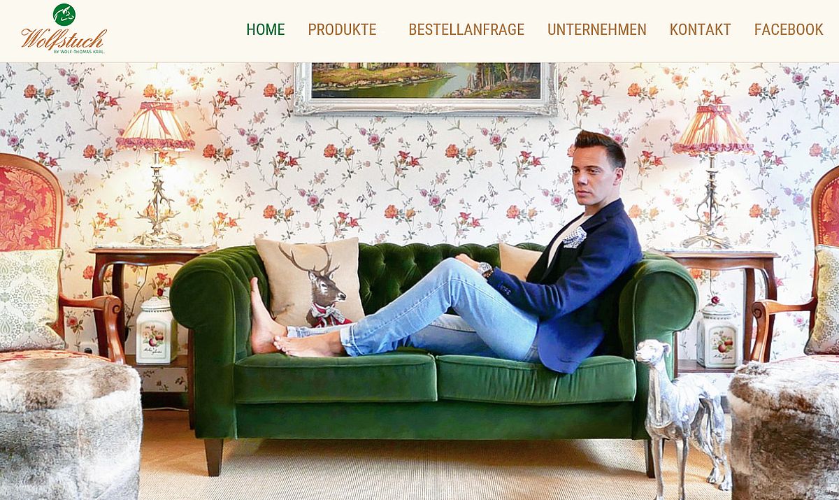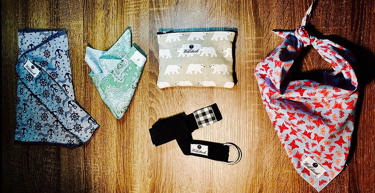 Wolfstuch stellt lediglich kleine Auflagen in Handarbeit her – handgemacht in Bayern. Verwendet werden ausschließlich hochwertige Baumwollstoffe aus Deutschland, Österreich, Italien, Großbritannien und Frankreich, die nach dem Zuschnitt mit einem farbigen Rollsaum versehen werden. Das Angebot umfasst derzeit rund sechzig verschiedene Designs.
