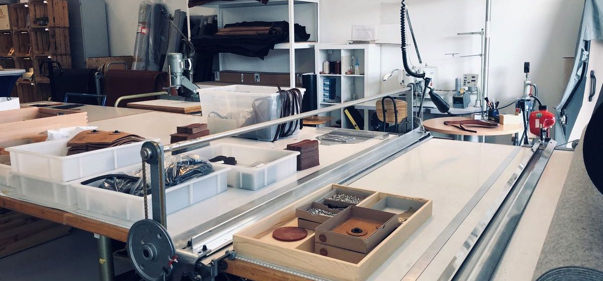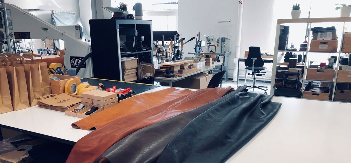 Hier strömt Besuchern direkt der Geruch von Leder in die Nase. Kein Wunder, denn von dieser Location aus, die wie eine Mischung aus Büro und Produktion rüberkommt, gehen die hochwertigen Produkte raus an Kunden. Die Geschäftsführer Matthias und Clemens Burkert begrüßen mich in ihrer Schaltzentrale, dem Herzen von Pack & Smooch.