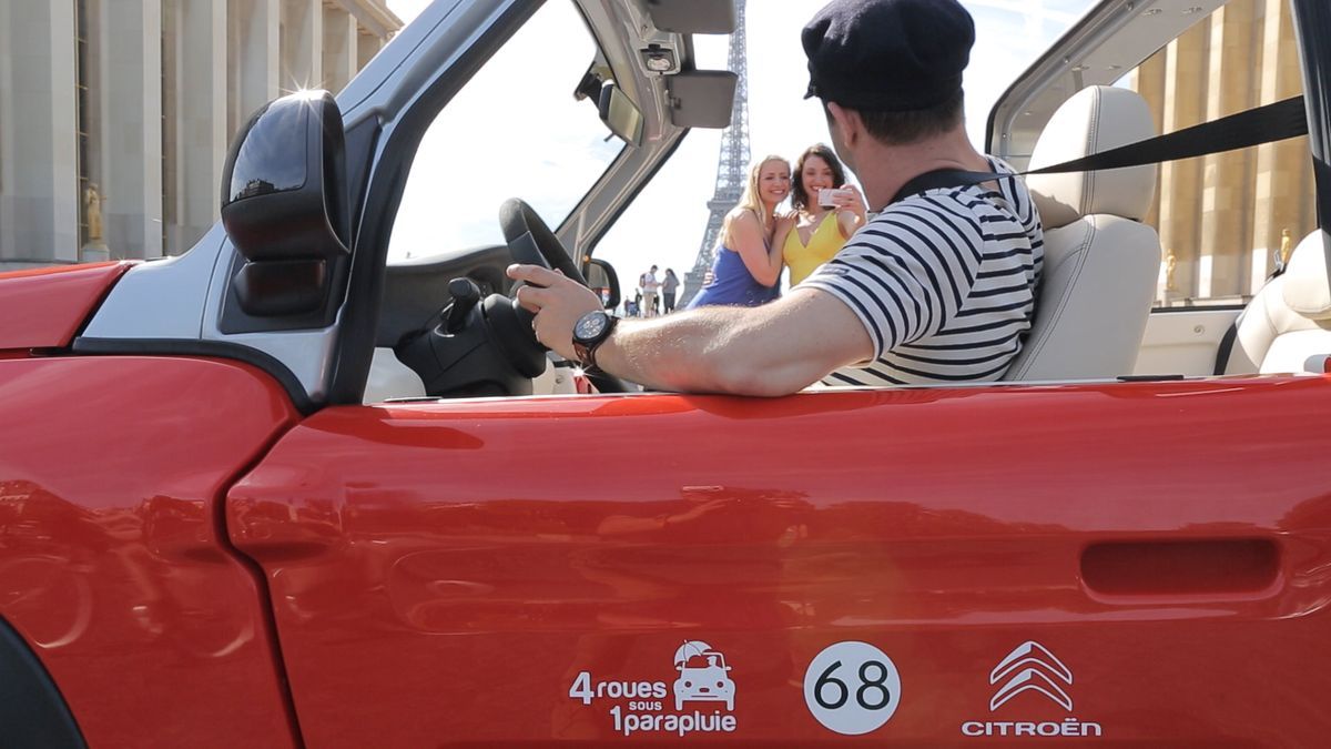 Möglich macht dies „4 Roues sous 1 Parapluie“, ein Stadtrundfahrten-Veranstalter, der ab sofort den Citroën E-Mehari im Angebot hat.