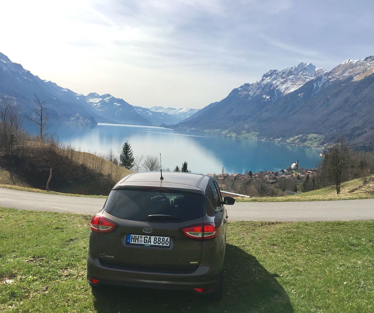 In Kombination mit dem Sechsgang Schaltgetriebe ist angenehmes Cruisen mit einem großen Platzgefühl einfach möglich. Und zur kleinen Überraschung macht der top ausgestattete Ford C-Max auf den Fotografien, die rund um Interlaken entstanden, noch eine gute Figur.