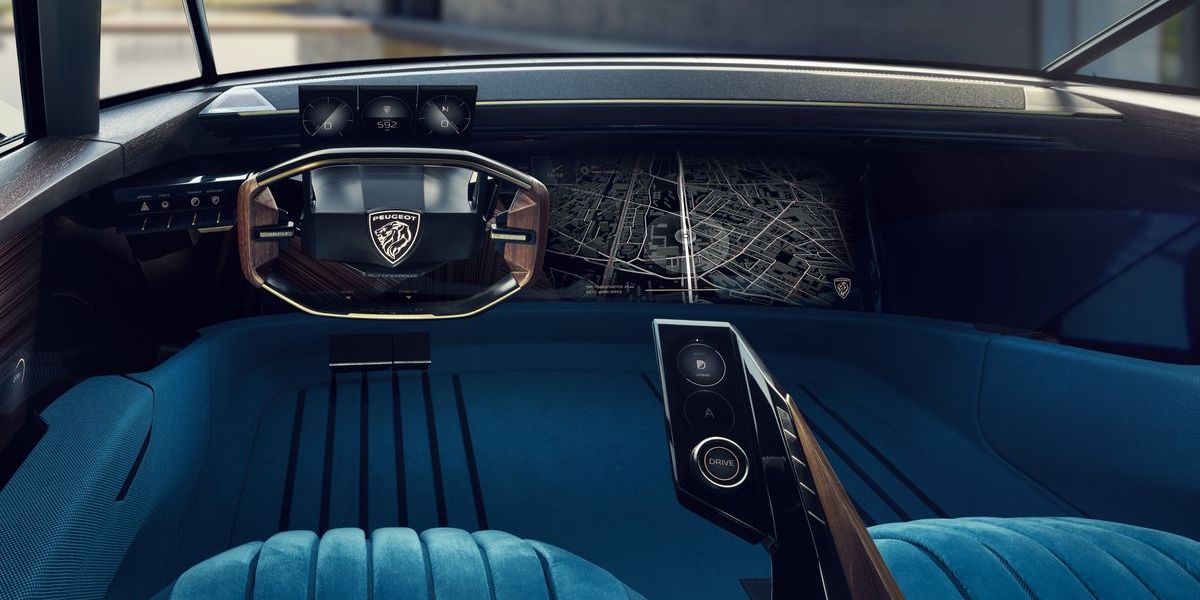 Der e-Legend Concept verfügt über jeweils zwei autonome und manuelle Fahrprogramme. Im manuellen Cruising-Modus erinnern die drei digitalen Instrumente an den berühmten 504 Coupé. Die damals legendäre Holzverarbeitung der Instrumente wird nun digital auf den verschiedenen Bildschirmen angezeigt.