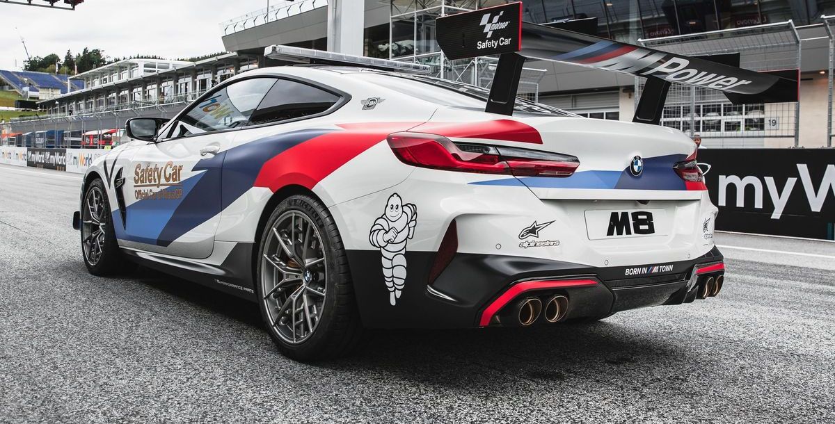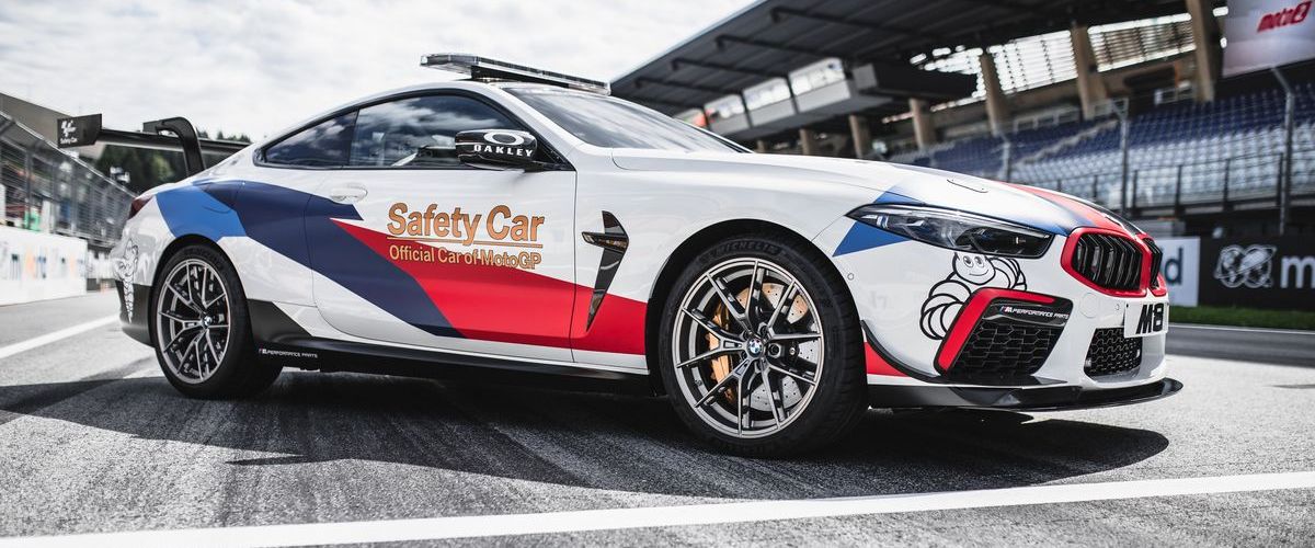 Ein BMW M8 ist neues Safety-Car des Moto-GP. Das 625 PS starke Führungsfahrzeug der Sicherheitsflotte beschleunigt in 3,2 Sekunden von 0 auf 100 km/h und verfügt über Allradantrieb.