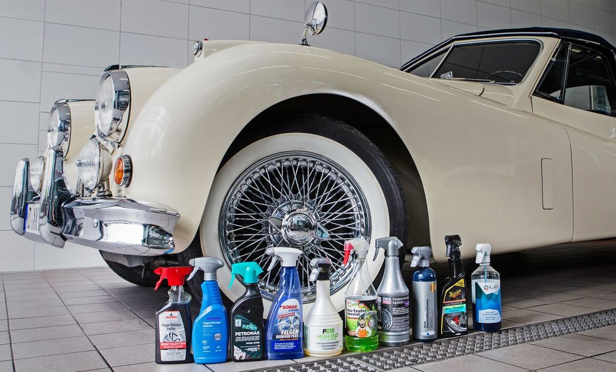 Die Gesellschaft für Technische Überwachung (GTÜ) und Auto Bild haben zehn handelsübliche Felgenreiniger zu Preisen zwischen 8,- und 20,- Euro in der Praxis auf stark verschmutzten Felgen getestet. Mit wenigen Ausnahmen hilft bei den meisten der getesteten Reinigern nur mechanische Nacharbeit mit einem Schwamm, um die dreckigen Felgen wirklich sauber zu bekommen.