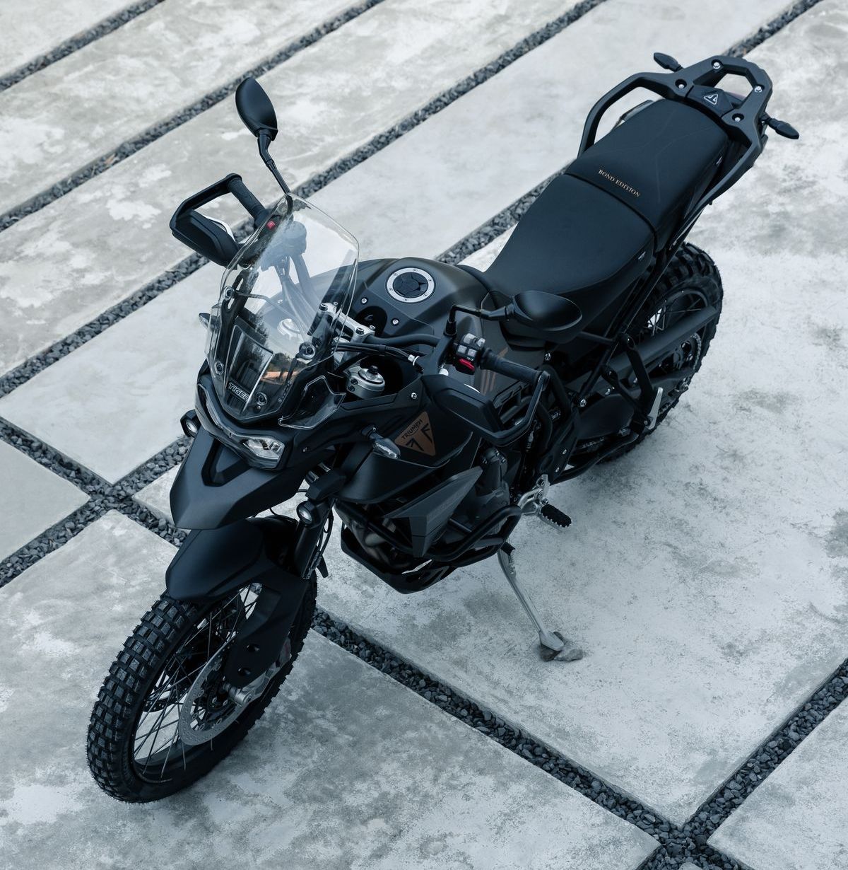 Käufer des Sondermodells erhalten eine in Matt Sapphire Black lackierte Tiger 900 Rally Pro mit exklusiver 007-Grafik und schwarzen Akzenten.