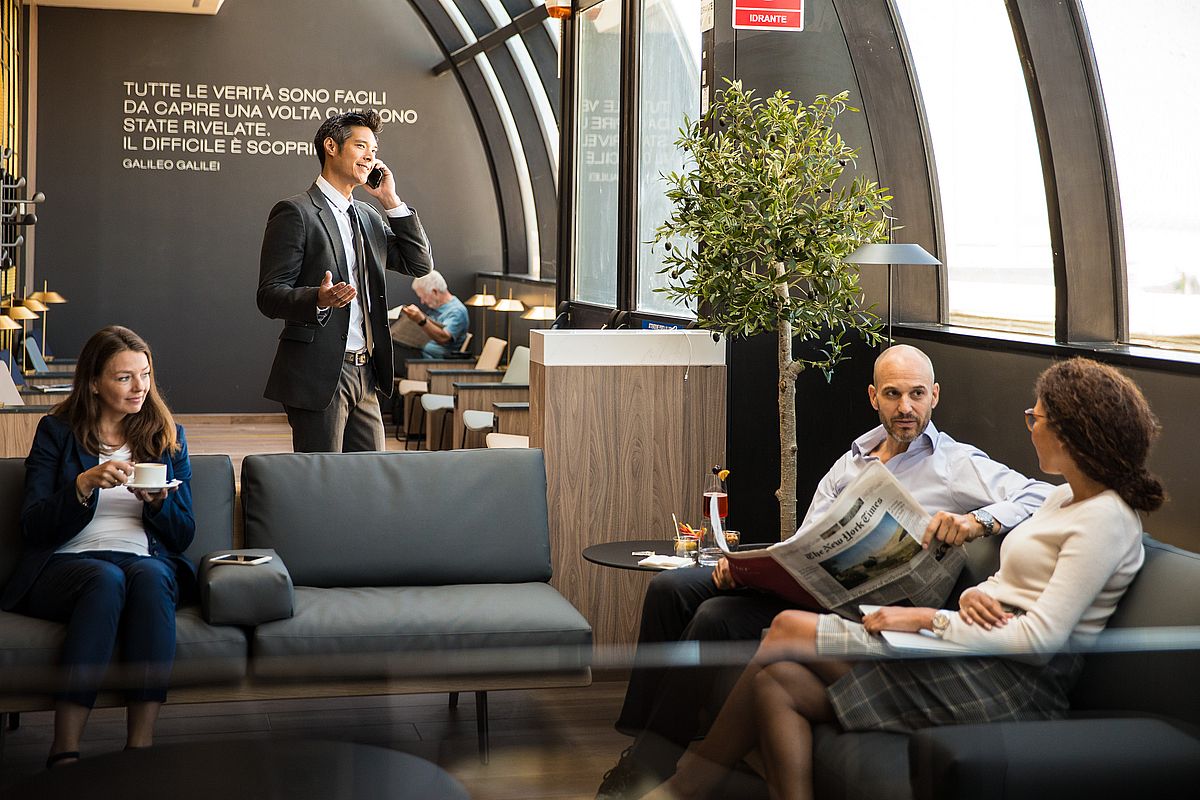 Denn in Rom prägen italienische Designermöbel den modischen Look. Es gibt funktionale Räume zum Arbeiten, Entspannen und Unterhalten. Zudem sind eine Bar mit Barista-Kaffeestation sowie typische italienische Gerichte zu finden.