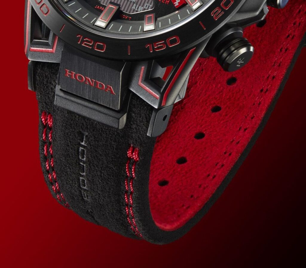 Alcantara ist in nahezu allen edlen und angesagten Sportwagen zu finden, so auch im aktuellen Honda Type R. Und ebenso wie die neuen Automobile ist die Uhr sehr smart unterwegs.