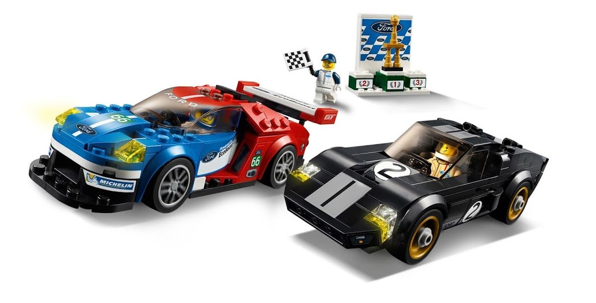 Die Rennfahrzeuge von Ford, die 1966 und 2016 das legendäre 24 Stunden Rennen in Le Mans gewonnen haben, sind ab sofort als Bausatz von Lego erhältlich. Das Ganze besteht aus dem aktuellen Ford GT Rennwagen und seinem berühmten Vorfahren: Dem Ford GT40 aus dem Jahre 1966.