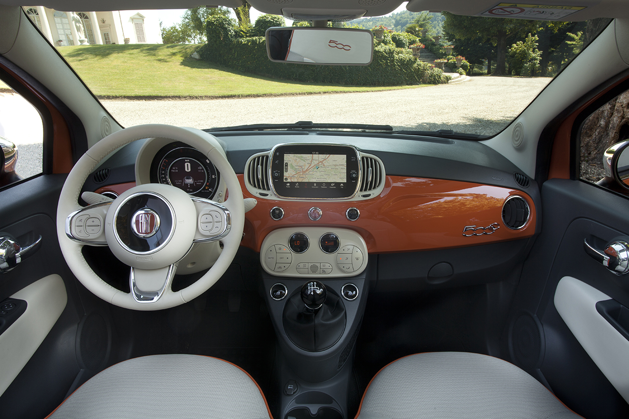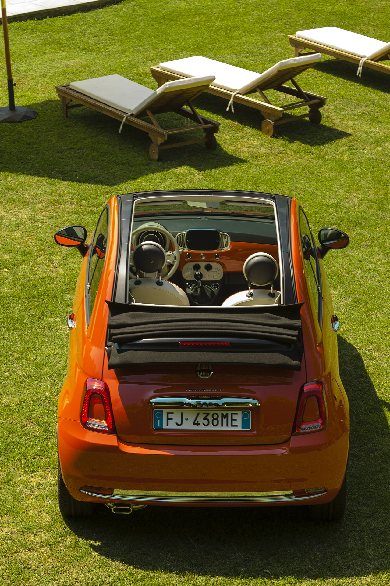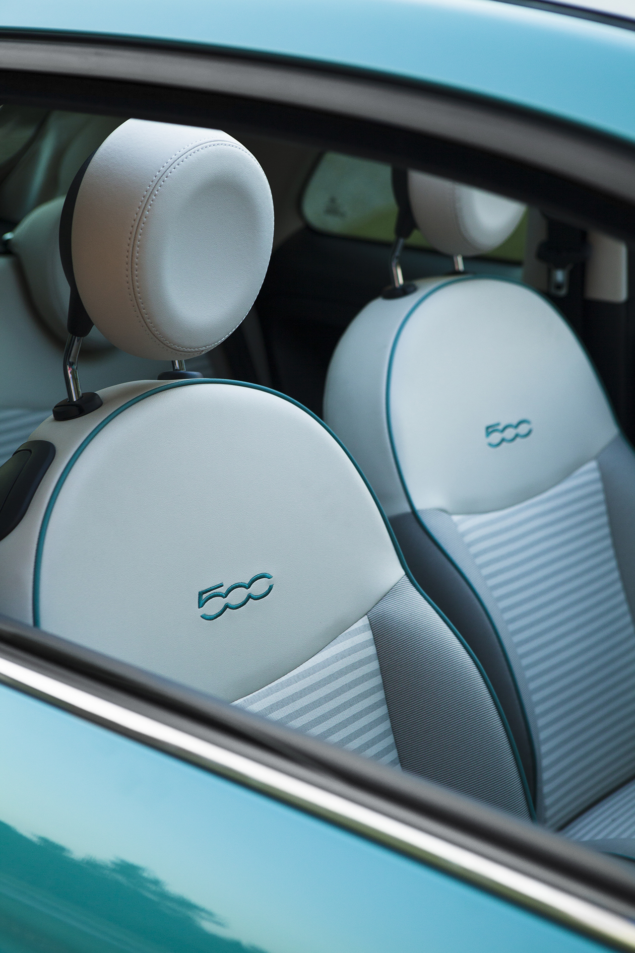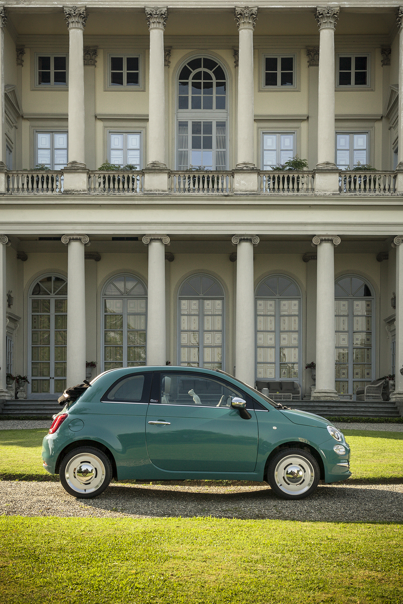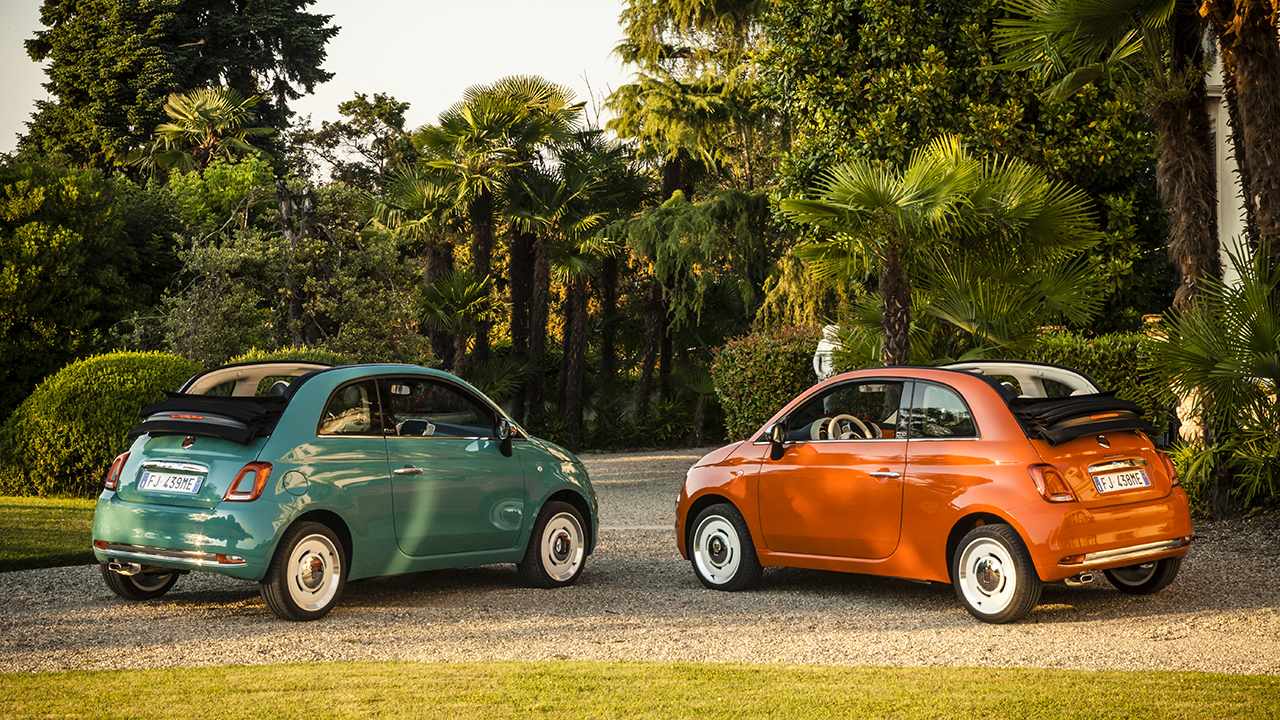 Der Schriftzug Anniversario auf der Kofferraumhaube rundet die exklusive Optik dieses 500ers ab, der als Limousine und als Cabriolet mit Stoffverdeck auf Liebhaber des italienischen Lebensgefühls wartet.