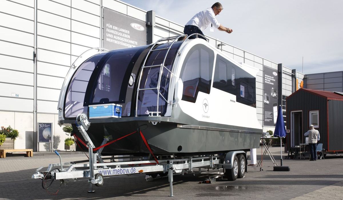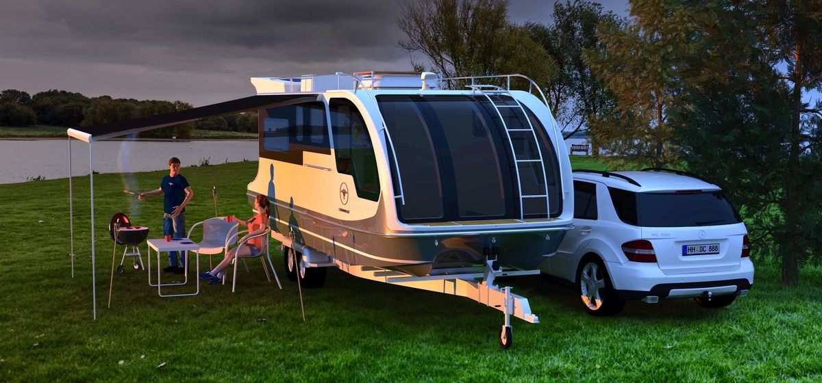 Es ist so eine Art fahrbares Hausboot, das Caravanboat Departure One. Oder auch ein schwimmender Caravan, mit dem Camping zu Lande und zu Wasser möglich ist. Je nach Sichtweise und Anspruch eben. So ganz neu ist die Idee nicht, bereits in den 1960er Jahren des vergangenen Jahrhunderts gab es erste schwimmende Wohnwagen.