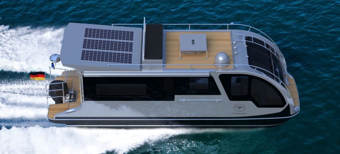Doch nun wurde die Idee wieder aufgegriffen. Eigentlich stammt sie in diesem Falle aus Australien, aber der Caravan wird in Hamburg auf europäische Standards umgebaut und angepasst. Einfach losfahren oder auch Leinen los, beides geht mit dem Caravanboat. Mit 15 PS – bis zu dieser Leistung darf das „Boot“ ohne Bootsführerschein gefahren werden – kann das fahrbare Hausboot auf Binnen- oder küstennahen Gewässern schippern und europäischen Wasserstraßen gefahren werden.