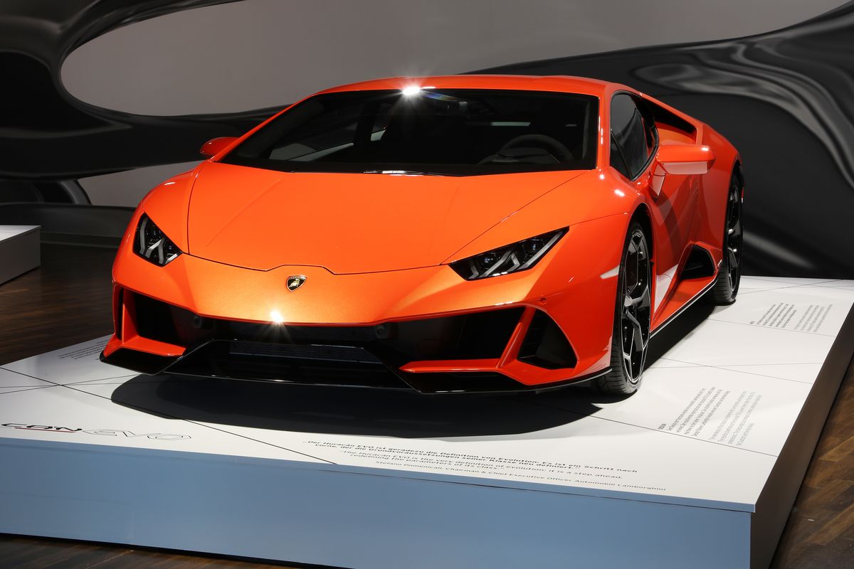 Mit dem Lamborghini Huracán Evo wird ein weiteres Fahrzeug aus dem aktuellen Modellprogramm präsentiert. Die markante Linienführung des Supersportwagens greift bereits bekannte Designelemente vergangener Modelle auf.
