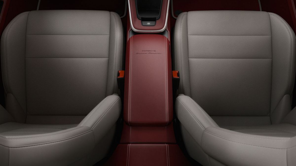 Weitere Details sind die „Porsche Exclusive Manufaktur“ Prägung auf dem Deckel des Ablagefachs in der Mittelkonsole, das geprägte Porsche-Wappen auf den Kopfstützen sowie die in Race-Tex ausgeführten Gurtaustrittsblenden bei den Coupés.
