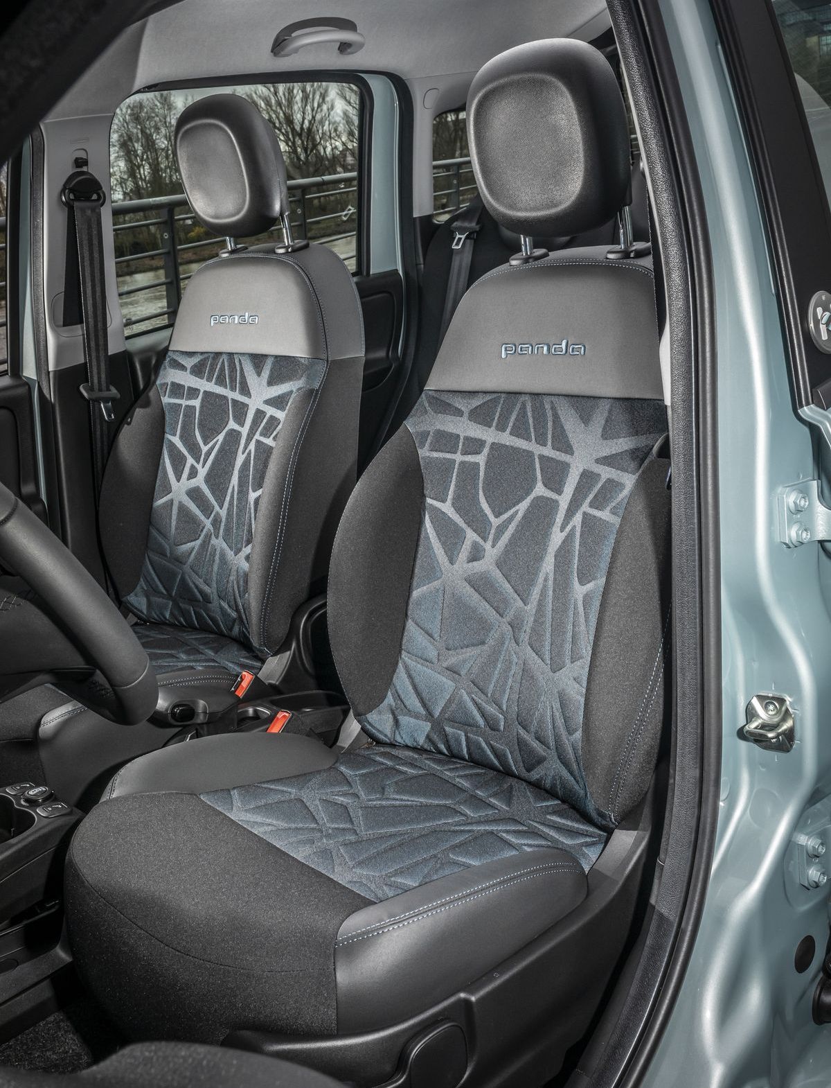 Außer der Plakette an der B-Säule weisen auch die Sitzbezüge auf die Erstausgabe hin. Sie bestehen aus recyceltem Kunststoff mit zehn Prozent Plastikmüllanteil aus dem Meer. Nichts groß geändert hat sich am Interieur. Noch immer wirkt die Innenraumgestaltung des Panda frisch und vor allem erfrischend anders. Das betrifft nicht nur die ansonsten weitgehend verschwundene große offene Ablage auf der Beifahrerseite, sondern auch die Umrahmung der Bedientasten und Anzeigen.