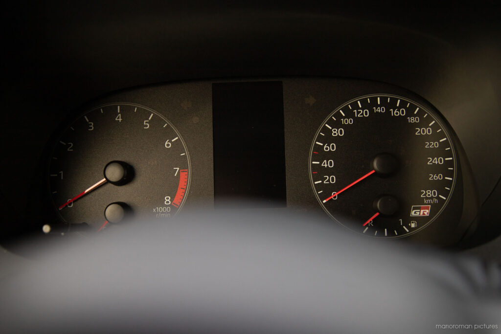 Time is Disco. Maximal gibt’s 230 km/h. Nicht, weil ihm da etwa die Puste ausgeht, sondern weil Mama Toyota das sagt. Bei dem kleinen Radstand vielleicht auch besser so.