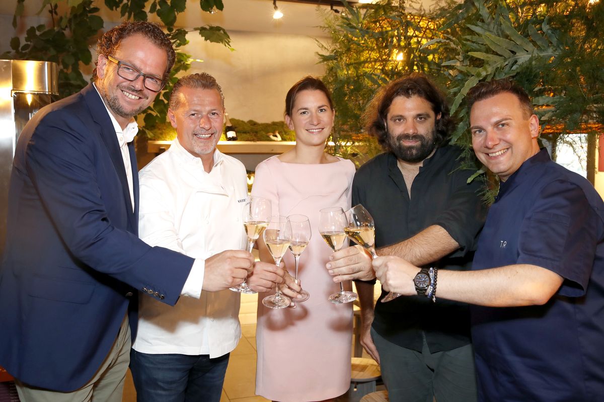 Am Herd standen Karlheinz Hauser, Tim Raue, Konstantin Filippou und Glynn Purnell. Dazu floss natürlich reichlich Krug Champagner.