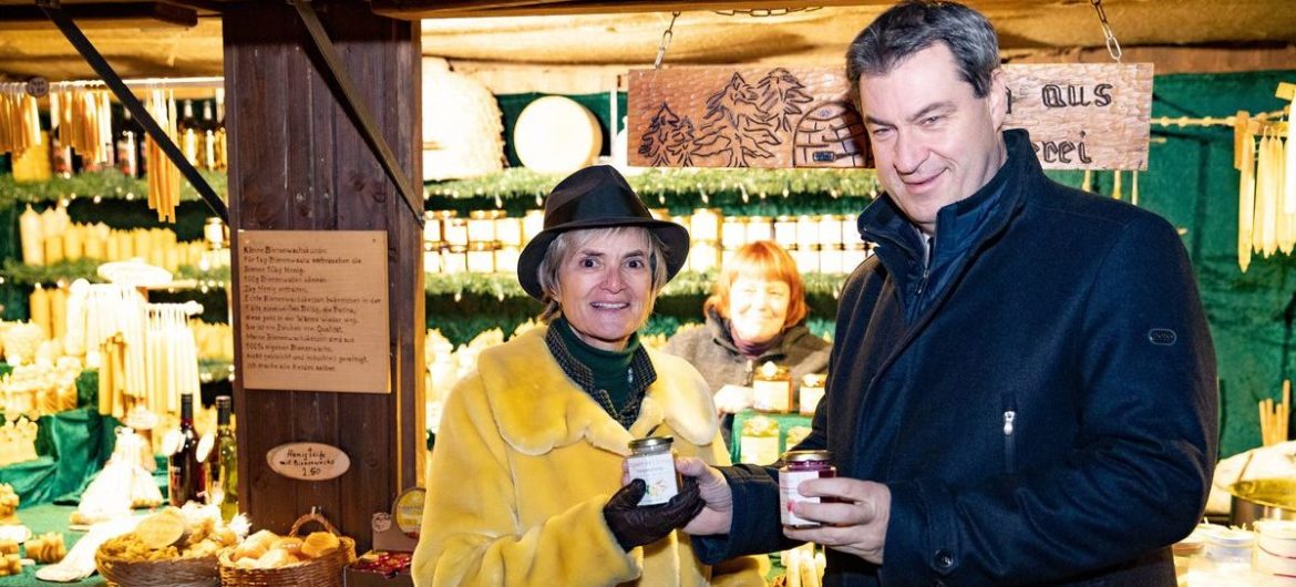 Bayerns Ministerpräsident Markus Söder genoss die Zeit nach der offiziellen Eröffnung an der Seite von Fürstin Gloria von Thurn und Taxis bei einem Bummel über den Weihnachtsmarkt.