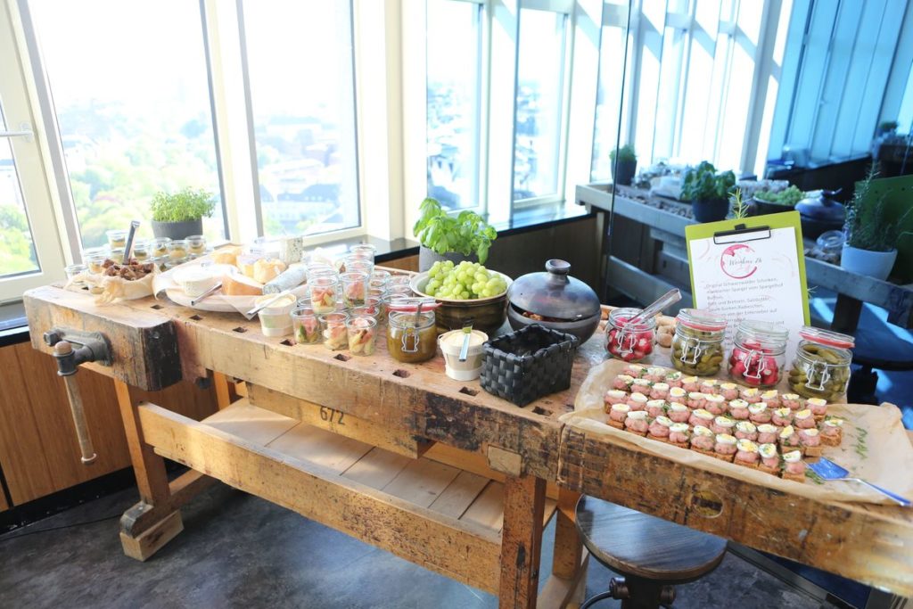 Das kulinarische Verwöhnprogramm kam nicht zu kurz. Leckereien – wie marinierter Spargel vom Spargelhof Bolhuis, Pralinen von der Entenleber auf Rhabarberragout, geröstetes Brot mit Kalbstatar und Wachtelei, Rinderfilet mit grobem Meersalz und Rotwein Jus, Spargelsuppe mit Flusskrebsen, Bärlauch-Kartoffelpüree an Perlhuhn Roulade gefüllt mit Entenleber, verschiedene Sorten Flammkuchen und Erdbeeren samt Rhabarberragout mit frischer Minze – standen reichlich bereit.