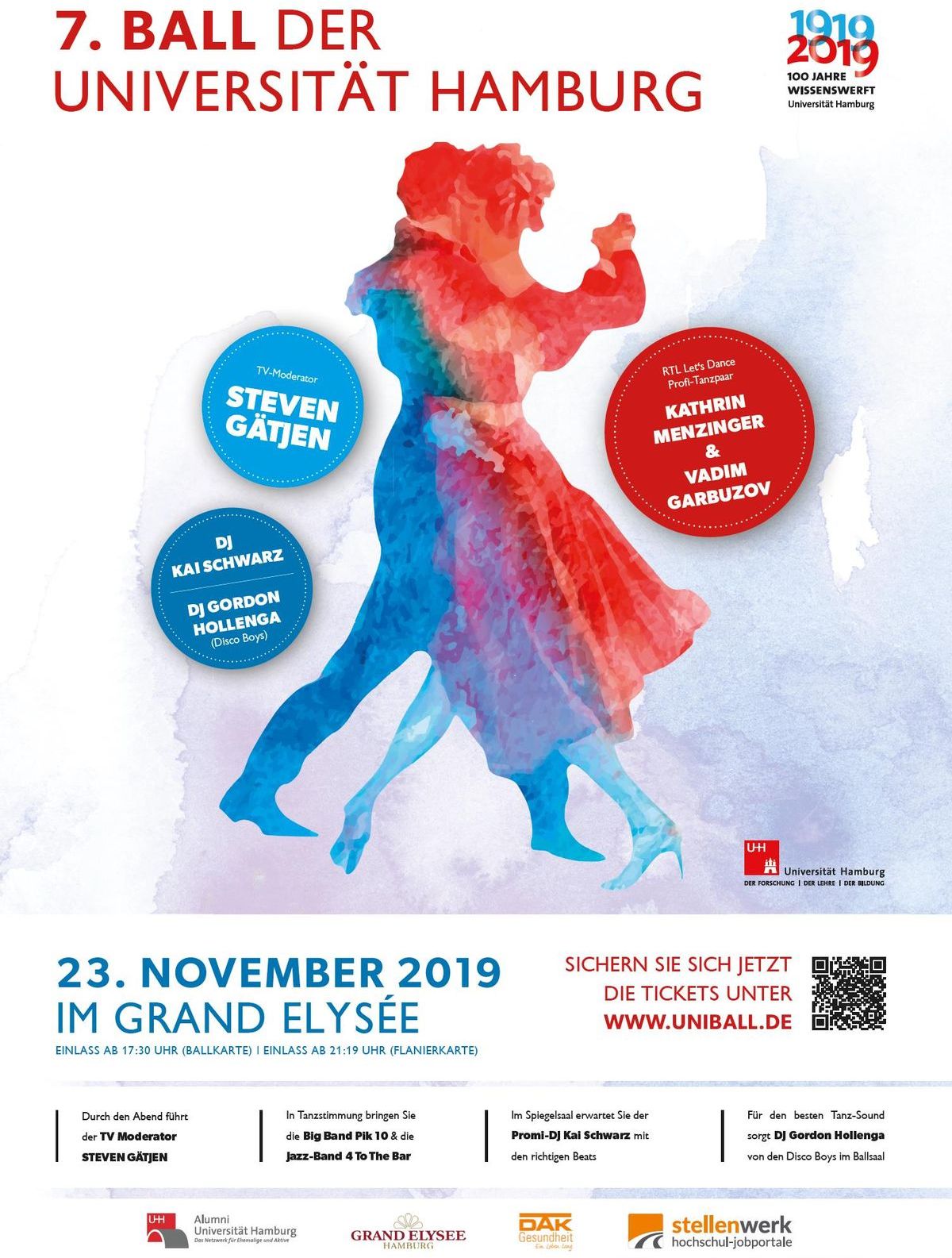 Am 23. November 2019 lädt die Universität Hamburg Gäste aus Wissenschaft, Wirtschaft, Politik und Gesellschaft zum 7. Ball der Universität Hamburg ins Grand Elysée Hotel Hamburg ein. Es soll dann der krönende Abschluss des Jubiläumsjahres sein, denn das ganze Jahr 2019 wird „100 Jahre Universität Hamburg“ gefeiert.