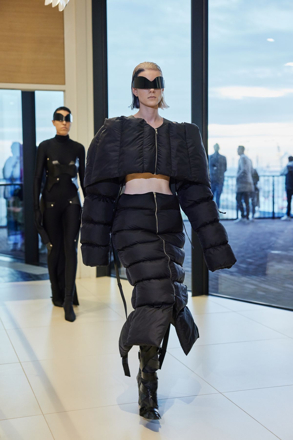 Hinter den Looks stecken die Modedesign-Studenten der Hochschule Macromedia, die anlässlich der diesjährigen „Moon Art Fair“ vor der Kulisse des Elphi-Plaza ihre Semester-Kollektionen präsentierten.