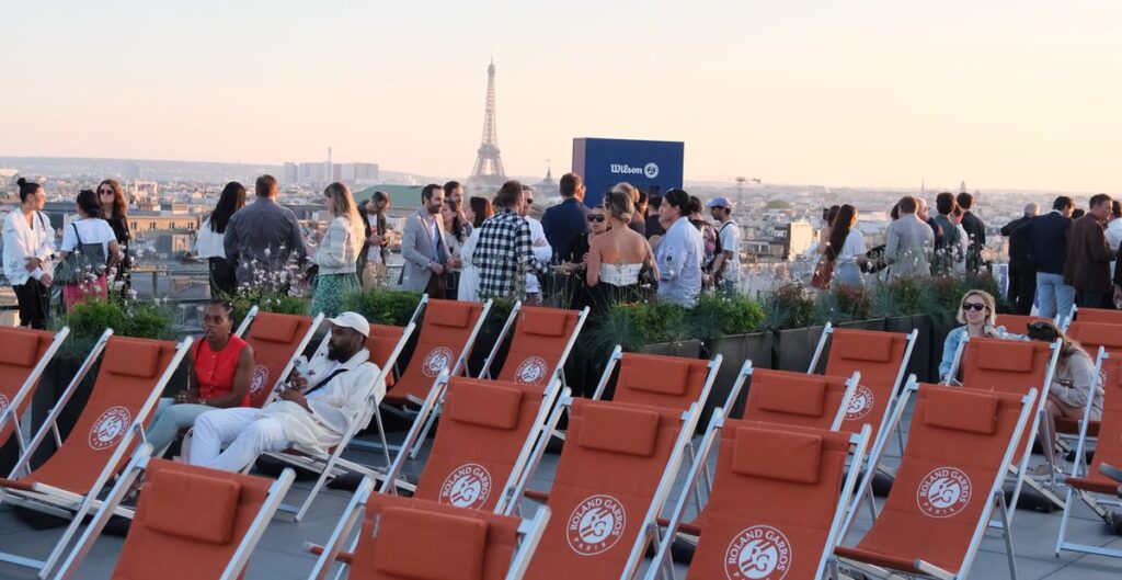Viele Gäste waren beim Cocktailempfang zu sehen, während sie die Abendveranstaltung von Roland Garros verfolgten und die atemberaubende Aussicht auf die Stadt des Lichts genossen.
