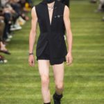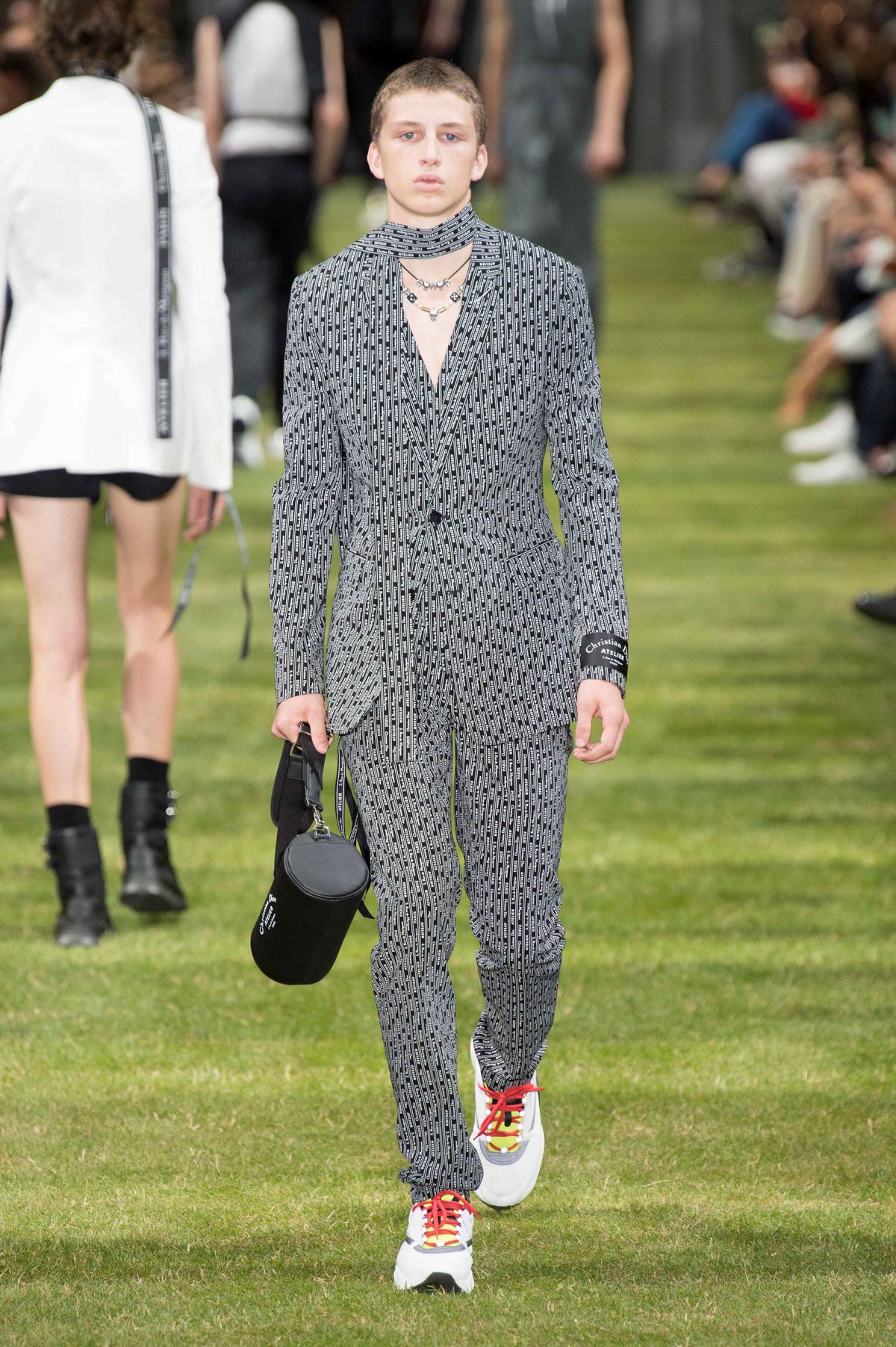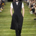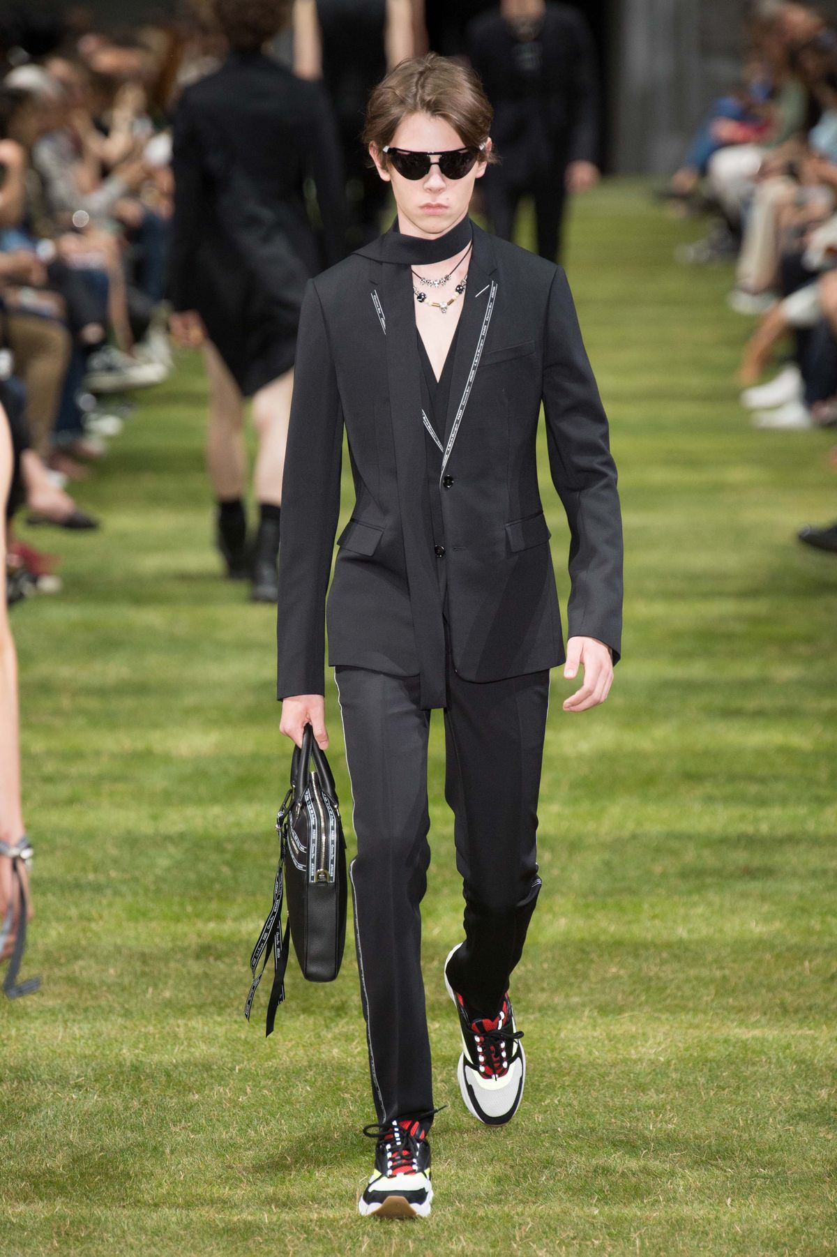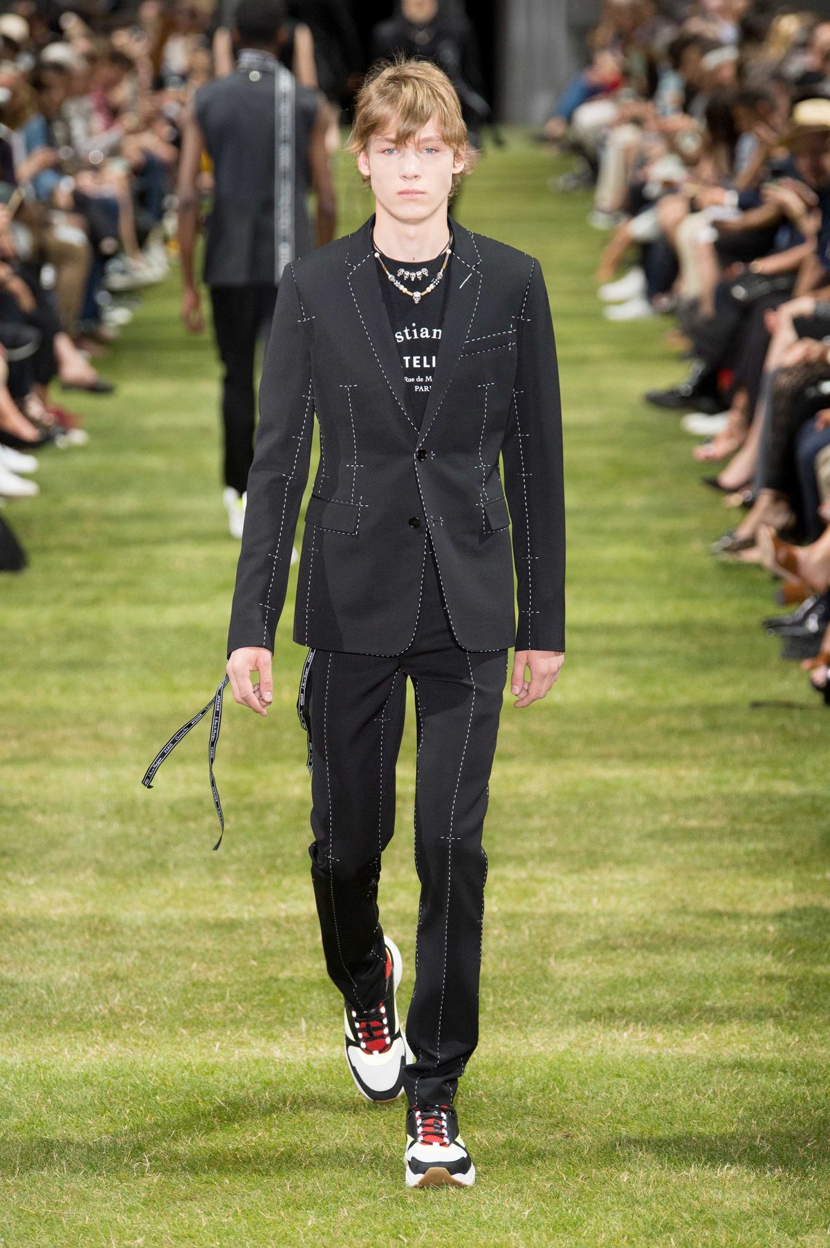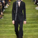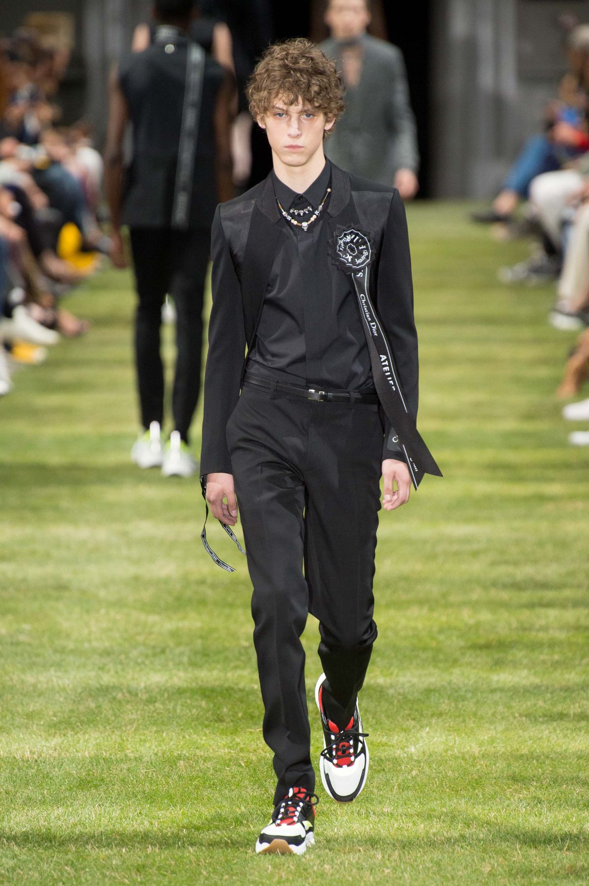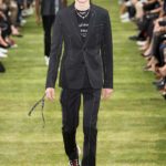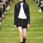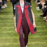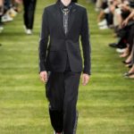 Uni-Elemente sind mit dem feinen Anzug verschmolzen. Van Assche sagte selbst, er stelle sich hierbei Schulkinder im Urlaub vor, die an ihren Uniformen herumbasteln und die Kleidung ihres Vaters stehlen. Hier trifft Sport auf Eleganz.