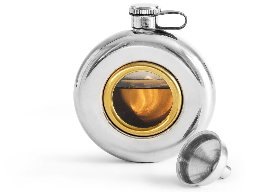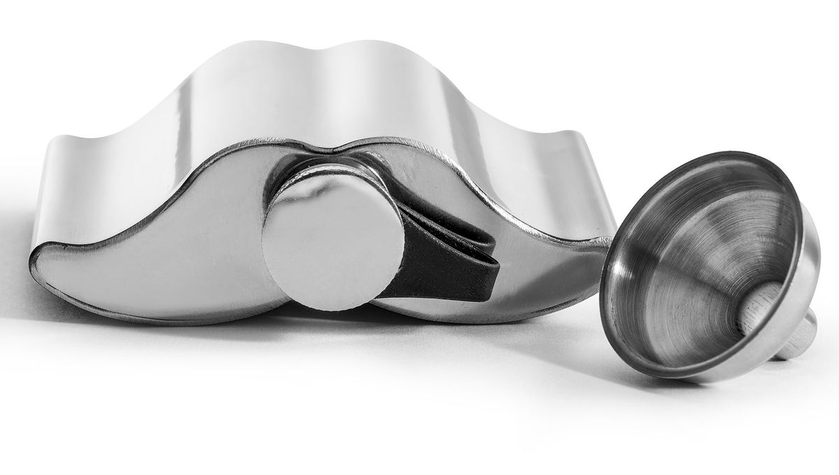Die Stücke aus poliertem Edelstahl wirken optisch ansprechend und kommen in maskulinen Formen. Mit dabei: Der Einfülltrichter.