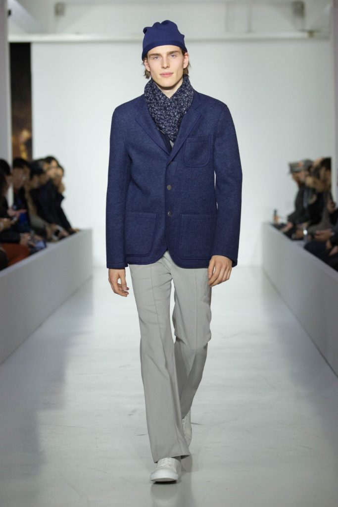 Zum Herbst und Winter 2018 gibt Agnès B. das Motto „den Gentleman wagen“ aus. Darunter versteht die Marke, sich zu trauen, das zu tragen, was man möchte, es zu mischen und dabei rustikale Stücke mit eleganten Teilen zu kombinieren.