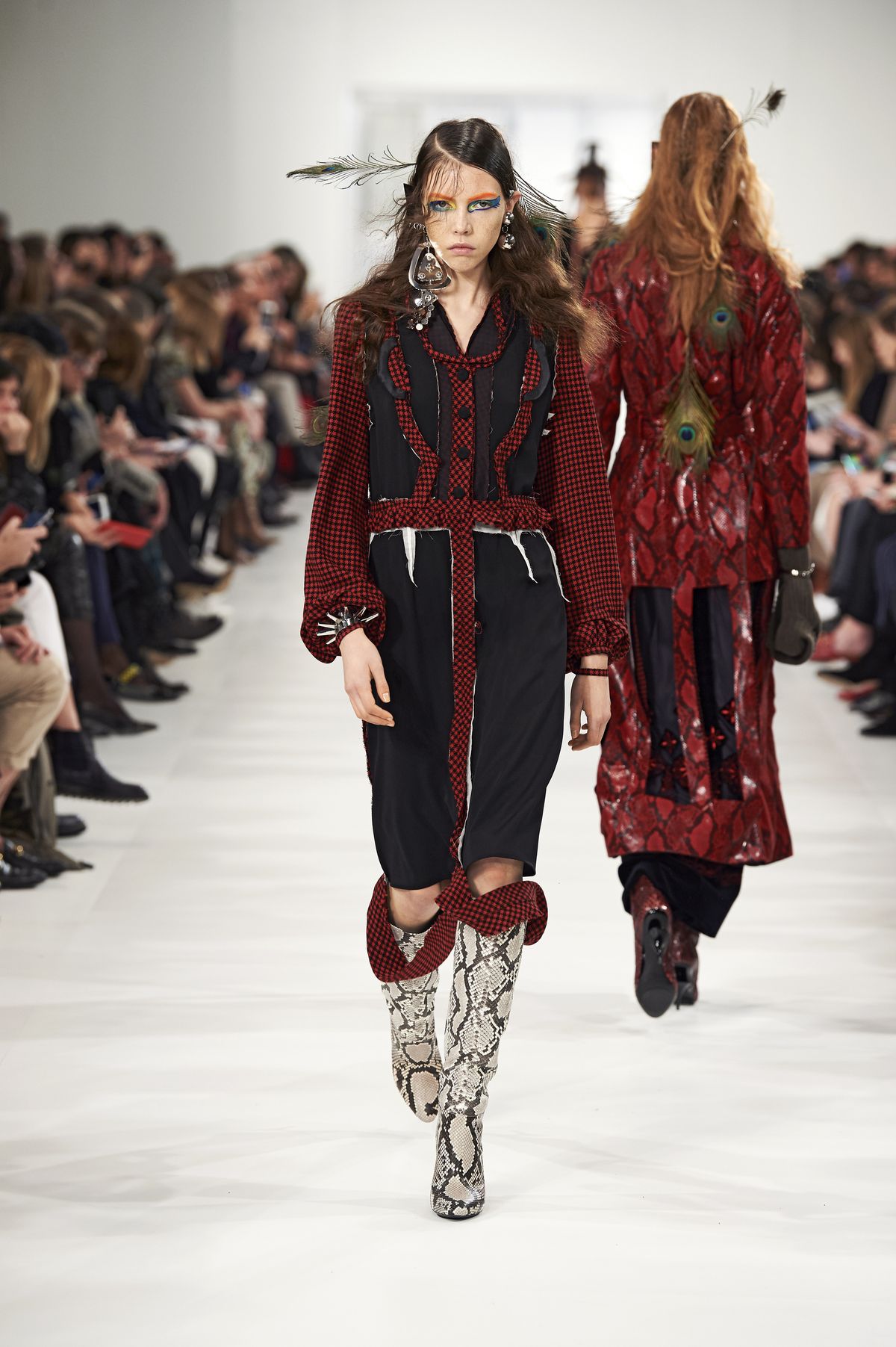 College-Jacken, Plaid-Anzüge, paillettenbesetzte Kleider, Fell-Boots und Ledermäntel in Schlangen-Optik gehören da noch zu den tragbaren Entwürfen.