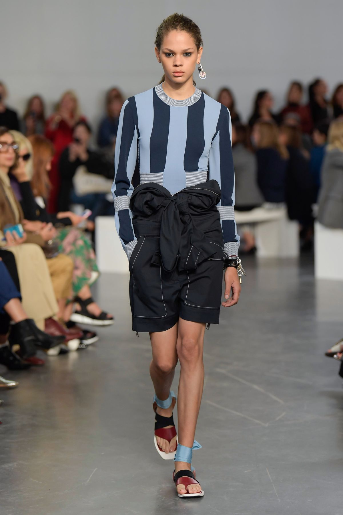 So entsteht für Frühjahr und Sommer 2018 ein befreiter und entspannter Stil für die Gehwege der großen Metropolen und den Strand. Sportmax präsentiert eine unmissverständlich sinnliche Linie, bei der der Körper anmutig enthüllt wird, während er sich bewegt.