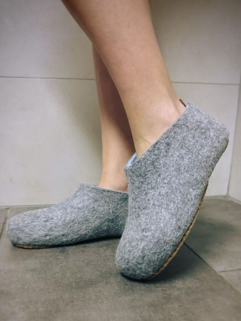 Die Hausschuhe, die zu 100% aus Wollfilz gefertigt sind, überzeugen durch ihr natürliches Material, das sich flexibel der Fußform anpasst.