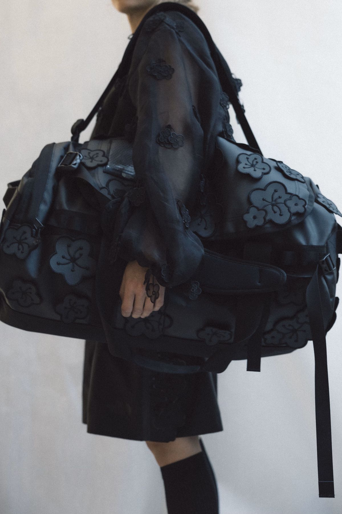 Die Designs sind in einer schlichten schwarzen Farbpalette gehalten und zeichnen sich durch skulpturale Formen und Leichtigkeit aus. Besondere Merkmale sind wellenförmige Säume und 3D-Blumenapplikationen, die Bahnsens unverkennbaren Stil widerspiegeln.