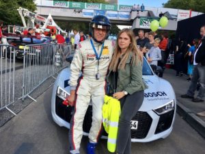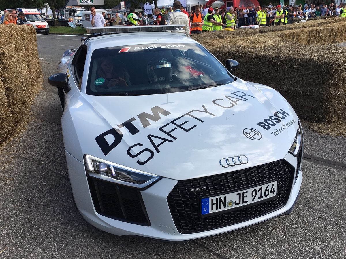 Mein Highlight des Tages: Ich hatte die absolute Ehre, mehrere rasante Runden im Audi Safety-Car der DTM zu drehen – leider nur als Beifahrerin. Geflasht bin ich trotzdem.