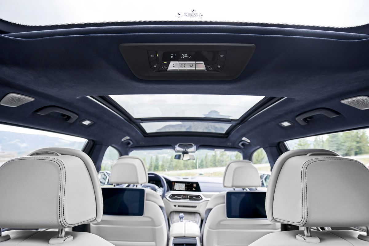 Weitere serienmäßige Merkmale des X7 sind ein voll digitales Cockpit mit 12,3 Zoll Bildschirmdiagonale, eine Vier-Zonen-Klimaautomatik, Ambiente- Licht und ein dreiteiliges Panorama-Glasdach. Auf Wunsch stehen unter anderem Fünf-Zonen-Klimaautomatik, Laserlicht, Bedienelemente mit Glasapplikationen und das Panorama-Glasdach „Sky Lounge“ sowie 21 und 22 Zoll Räder bereit.