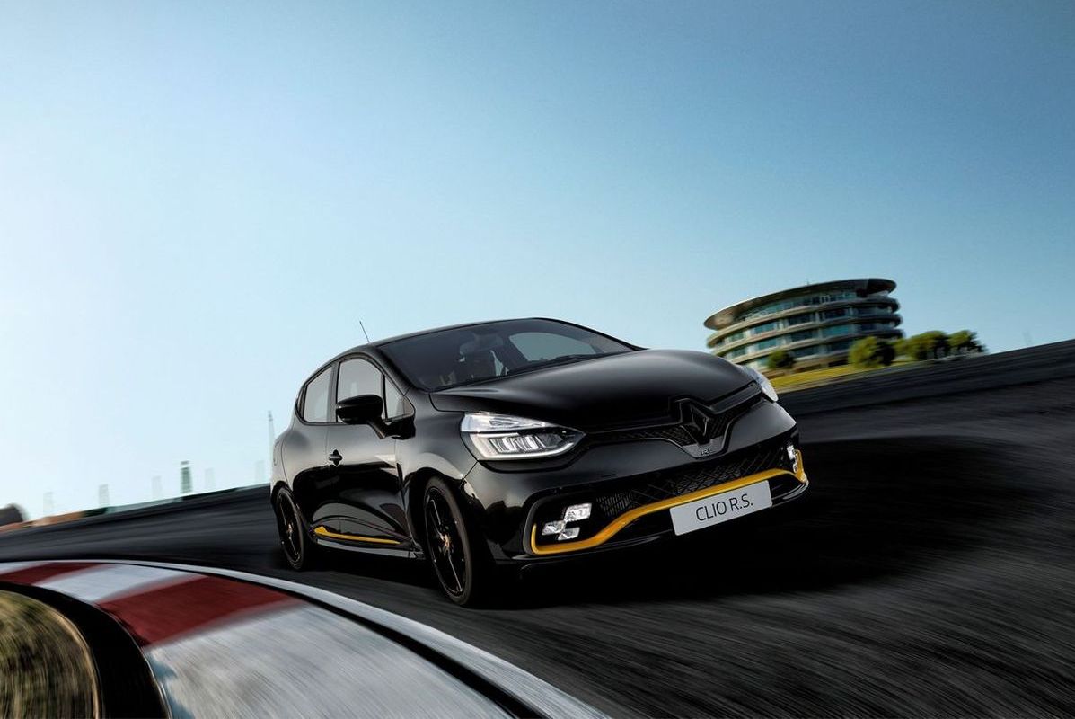 Seitenschutzleisten, Radnabenabdeckungen und Luftleitelement kommen in Sirius-Gelb. Der Schriftzug R.S.18 glänzt auf den Türen und das Renault Sport Logo erscheint auf dem Dach.