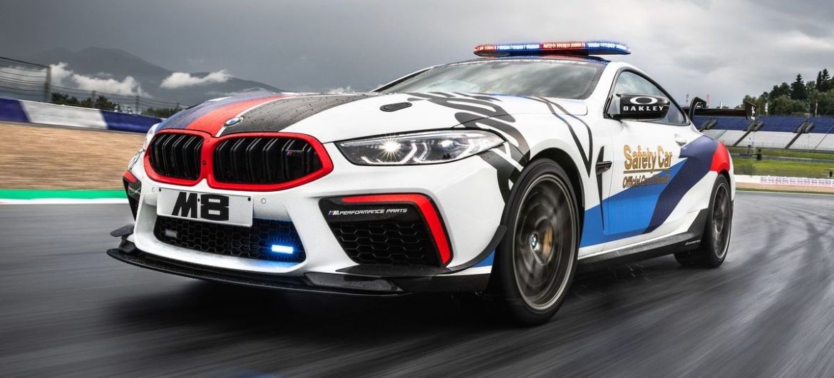 Ein BMW M8 ist neues Safety-Car des Moto-GP. Das 625 PS starke Führungsfahrzeug der Sicherheitsflotte beschleunigt in 3,2 Sekunden von 0 auf 100 km/h und verfügt über Allradantrieb.