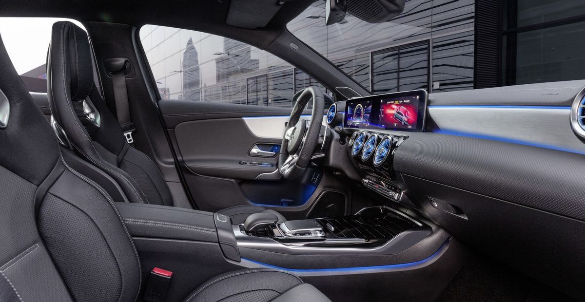 Mit an Bord sind das Mbux-Multimediasystem, das Kombiinstrument mit drei Anzeigestilen und die eigenständige AMG-Mittelkonsole mit Touchpad und zusätzlichen Schaltern zur Bedienung von ESP, manuellem Getriebemodus und adaptiver Verstelldämpfung.