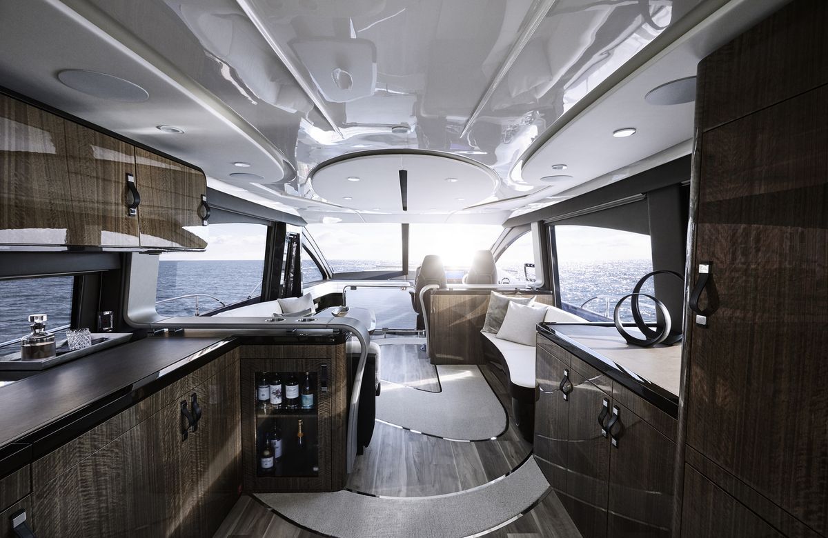 Der Salon umfasst einen Kapitänssitz und vorwärts gerichtete Sofas sowie eine achtern angeordnete Kombüse. Unterhalb des Salons befinden sich drei Schlafzimmer mit einer Stehhöhe von mehr als zwei Metern, die jeweils über eine eigene Dusche verfügen.