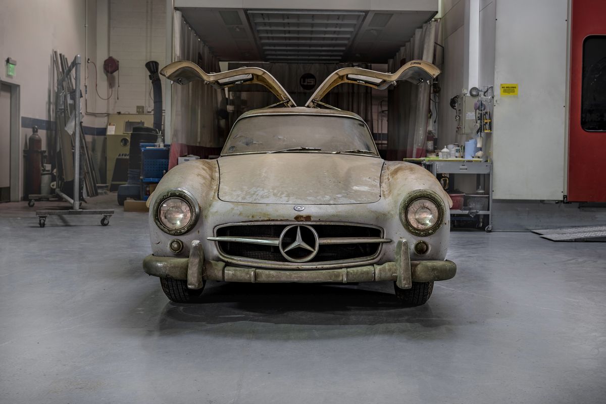 Dabei sind Zwillinge des Mercedes-Benz 300 SL (W 198) aus den 1950er Jahren, der eine im Zustand eines Scheunenfunds, der andere perfekt restauriert. Außerdem auf dem Mercedes-Benz-Gelände zu sehen ist das Showcar namens Vision EQ Silver Arrow.