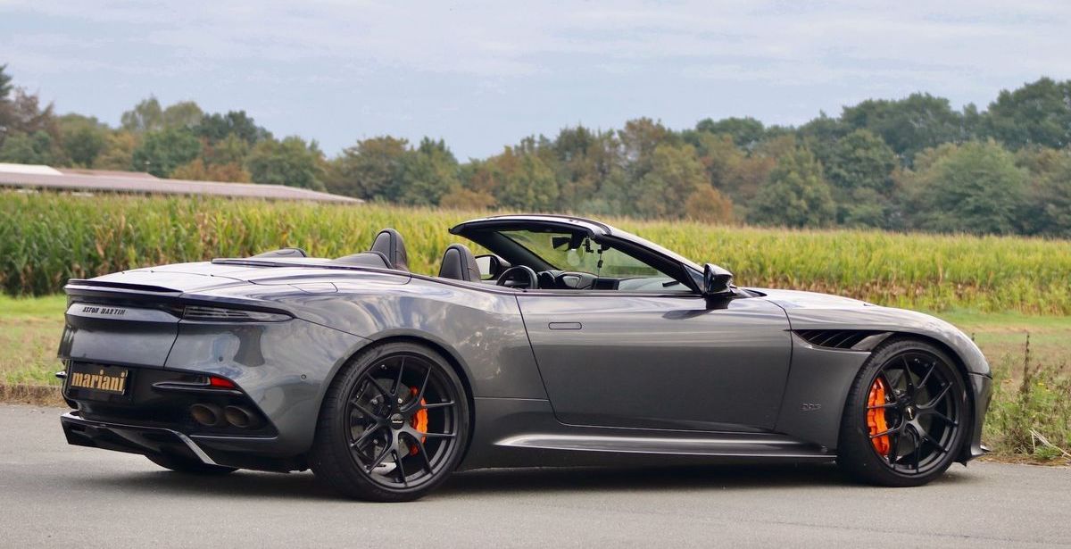 Doch Mariani will es wirklich wissen und verbreitert die Spur des Aston Martin DBS Superleggera Volante bis an die äußersten Kanten der Karosserie. Das verleiht dem Boliden eine imposante Präsenz auf der Straße – und verbessert Straßenlage sowie Kurvenverhalten.