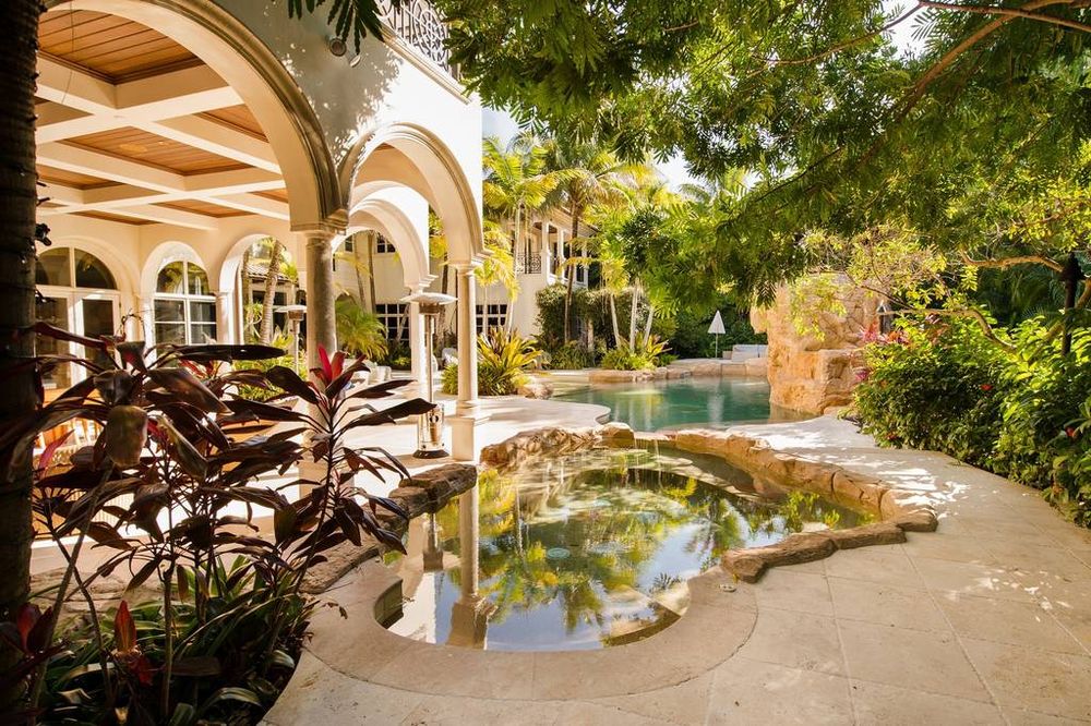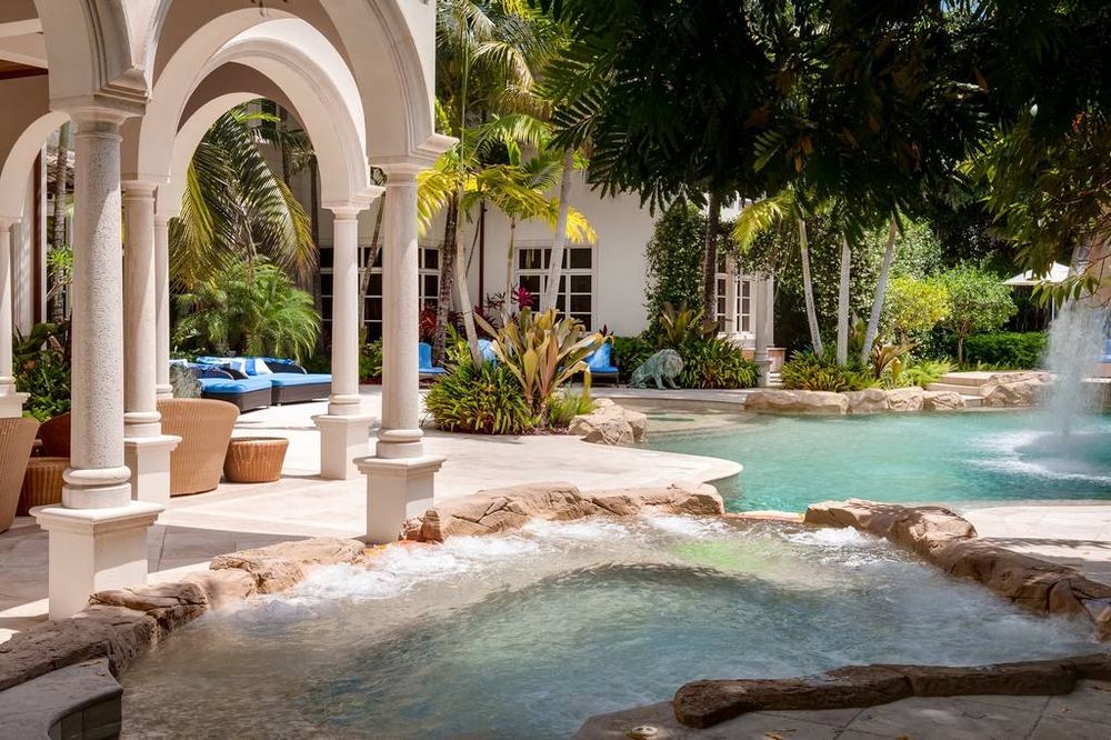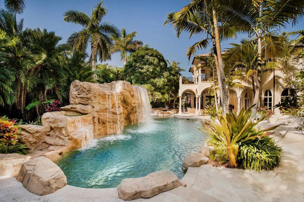 Neben der ausgedehnten Pool-Landschaft, verfügt die luxuriöse Villa über zehn Bade- und neun Schlafzimmer sowie diverse Sportplätze. Für knapp 27 Millionen Euro steht dieses Traumhaus mit allen Annehmlichkeiten in Florida zum Verkauf.