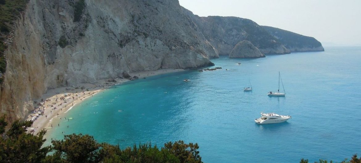 Nahe des griechischen Festlandes liegt die kleine Bucht Katsiki auf der Insel Lefkada im Ionischen Meer. Von weitem sieht sie wie ein karibischer Strand aus – aus der Nähe erkennt man aber die wunderschöne griechische Landschaft. Über 110 Stufen, die im Felsen eingelassen sind, ist die kleine Bucht zu erreichen. Eine atemberaubende Aussicht haben Urlauber oberhalb des Strandes.