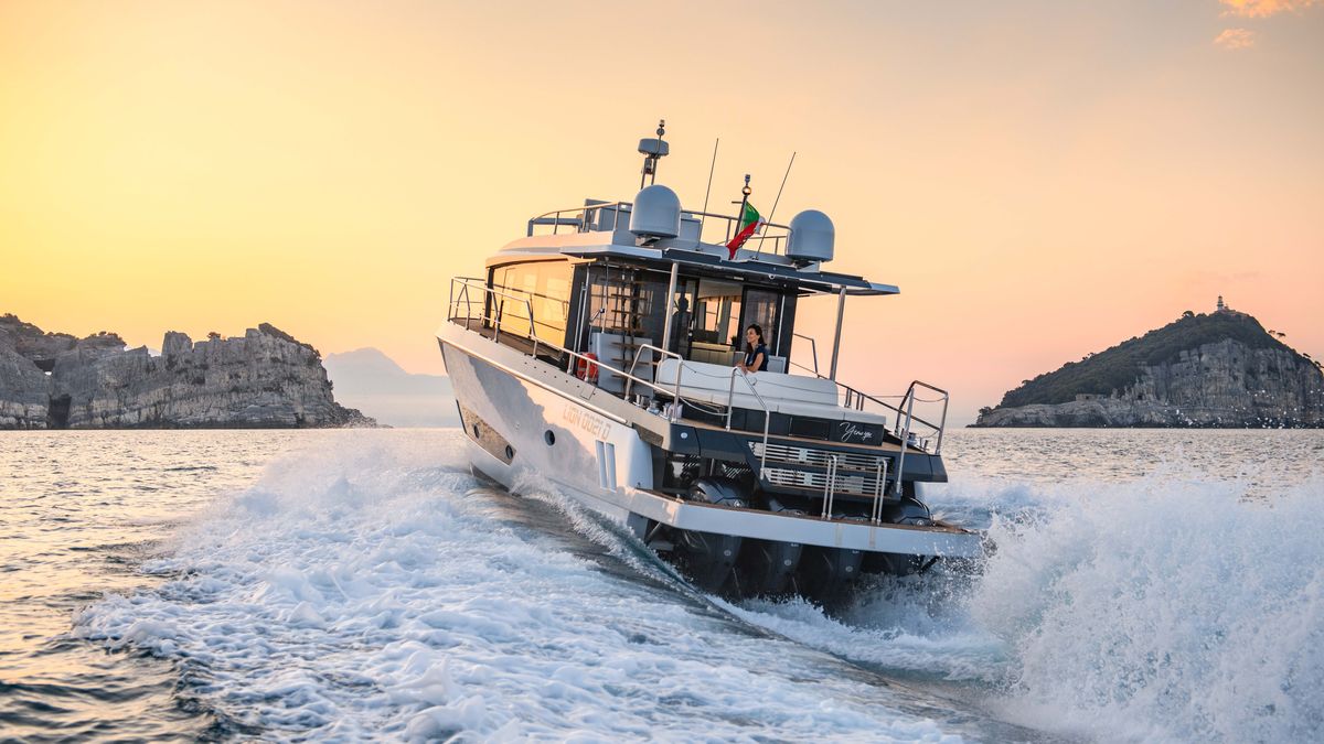 18,2 Meter lang, 27 Tonnen schwer und vier Außenbordmotoren – auf Anregung eines Kunden hat die italienische Luxusmarke namens Lion Yachts in Kooperation mit Yamaha eine 60-Fuß-Yacht gebaut, die trotz Außenbordmotoren echte Blauwassereigenschaften hat.