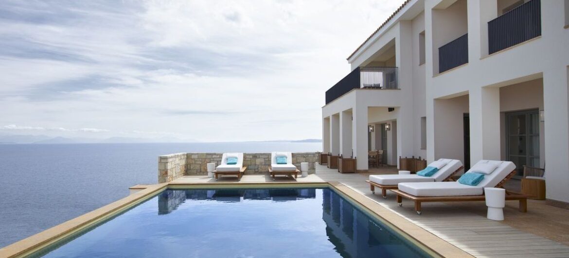 Das neue Luxusresort liegt auf einem idyllischen Hügel in der Akra Punta Bucht und verfügt über 159 moderne Gästezimmer, Suiten und 37 Poolvillen mit ein bis vier Schlafzimmern.
