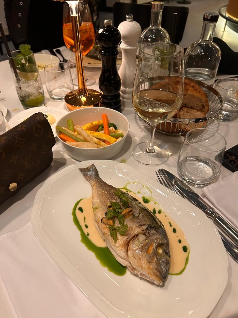Als Hauptgang entschied sie sich für Dorade auf mediterranem Gemüse, die zart auf der Zunge zerging und mit einer harmonischen Würze einen bleibenden Eindruck hinterließ.