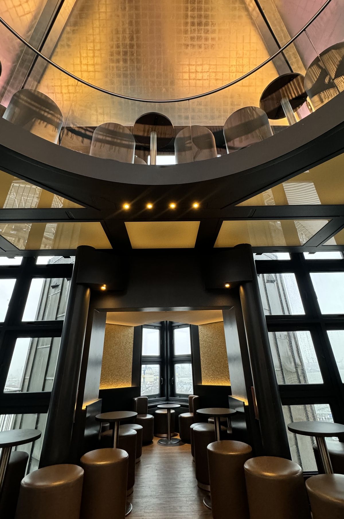 Ein Highlight sind die eingangs genannten Echtgoldfliesen, die in Kombination mit den neu bezogenen Ledersitzgelegenheiten ein stilvolles Ambiente schaffen. Der Panoramablick aus 62 Metern an Höhe ist für alle Besucher ein Erlebnis.