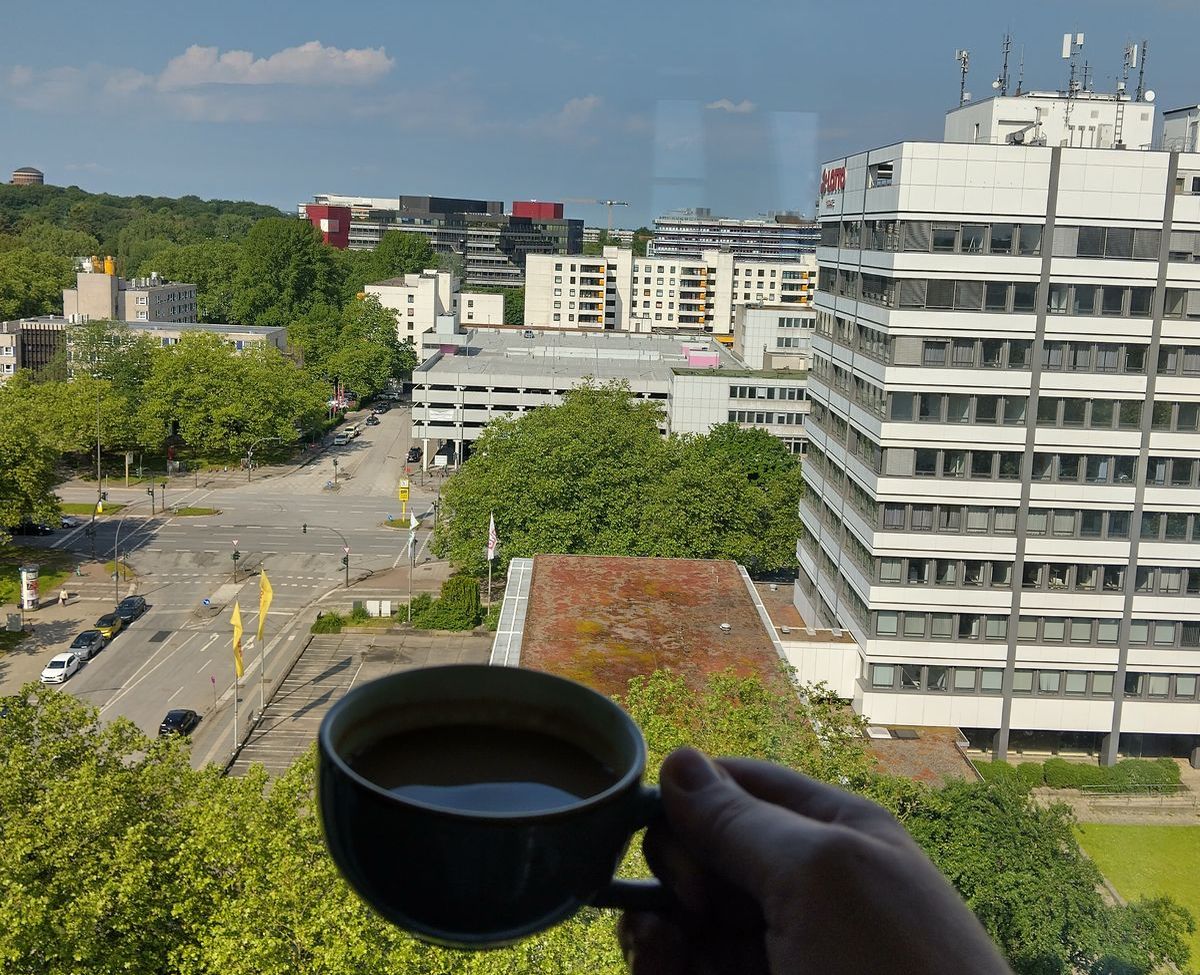 Besonders in den Abendstunden, wenn die Lichter der Stadt angehen, verwandelte sich das Panorama in ein Meer aus funkelnden Lichtern, das die klare Struktur der City-Nord und die Natur des Stadtparks in ein beeindruckendes Lichtspiel verwandelte.
