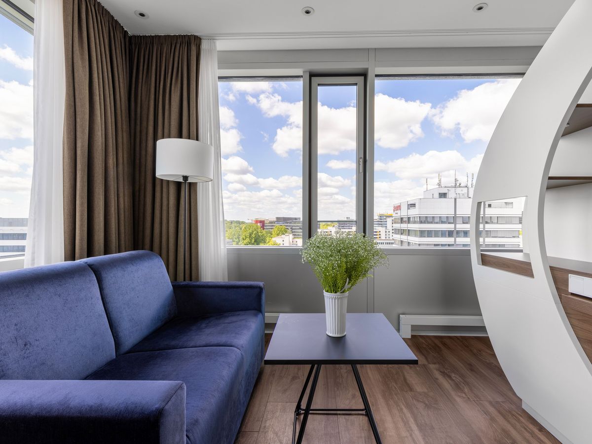 Die Suite im 9. Stock mit ihrer übergroßen Fensterfläche bot dann tatsächlich einen grandiosen Ausblick über die gesamte City-Nord und den weitläufigen Stadtpark.